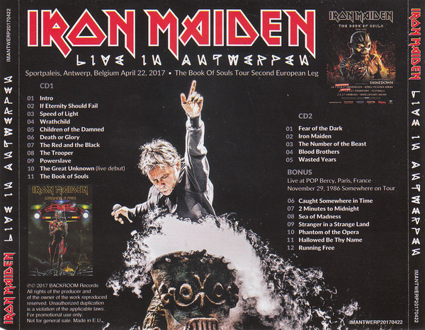 1. Intro (UFO - Doctor Doctor) 2. If Eternity Should Fail 3. Speed of Light 4. Wrathchild 5. Children of the Damned 6. Death or Glory 7. The Red and the Black 8. The Trooper 9. Powerslave 10. The Great Unknown 11. The Book of Souls