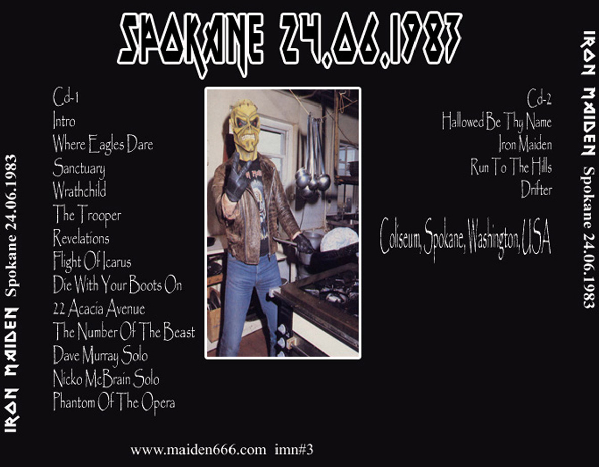 1. The Number of the Beast 2. Guitar Solo 3. Drum Solo 4. Phantom of the Opera 5. Hallowed Be Thy Name 6. Iron Maiden 7. Run to the Hills 8. Drifter (cut)