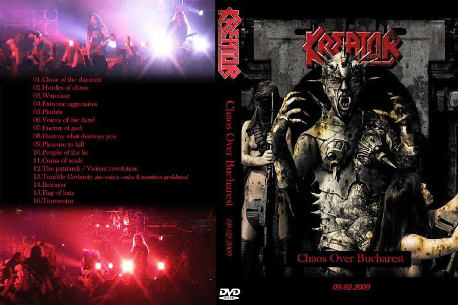 1. Choir of the Damned 2. Hordes of Chaos 3. Warcurse 4. Extreme Aggression 5. Phobia 6. Voices of the Dead 7. Enemy of God 8. Destroy What Destroys You 9. Pleasure to Kill 10. People of the Lie 11. Coma of Souls 12. The Patriarch / Violent Revolution 13. Terrible Certainty (no voices - mics & monitors problems) 14. Betrayer 15. Flag of Hate 16. Tormentor