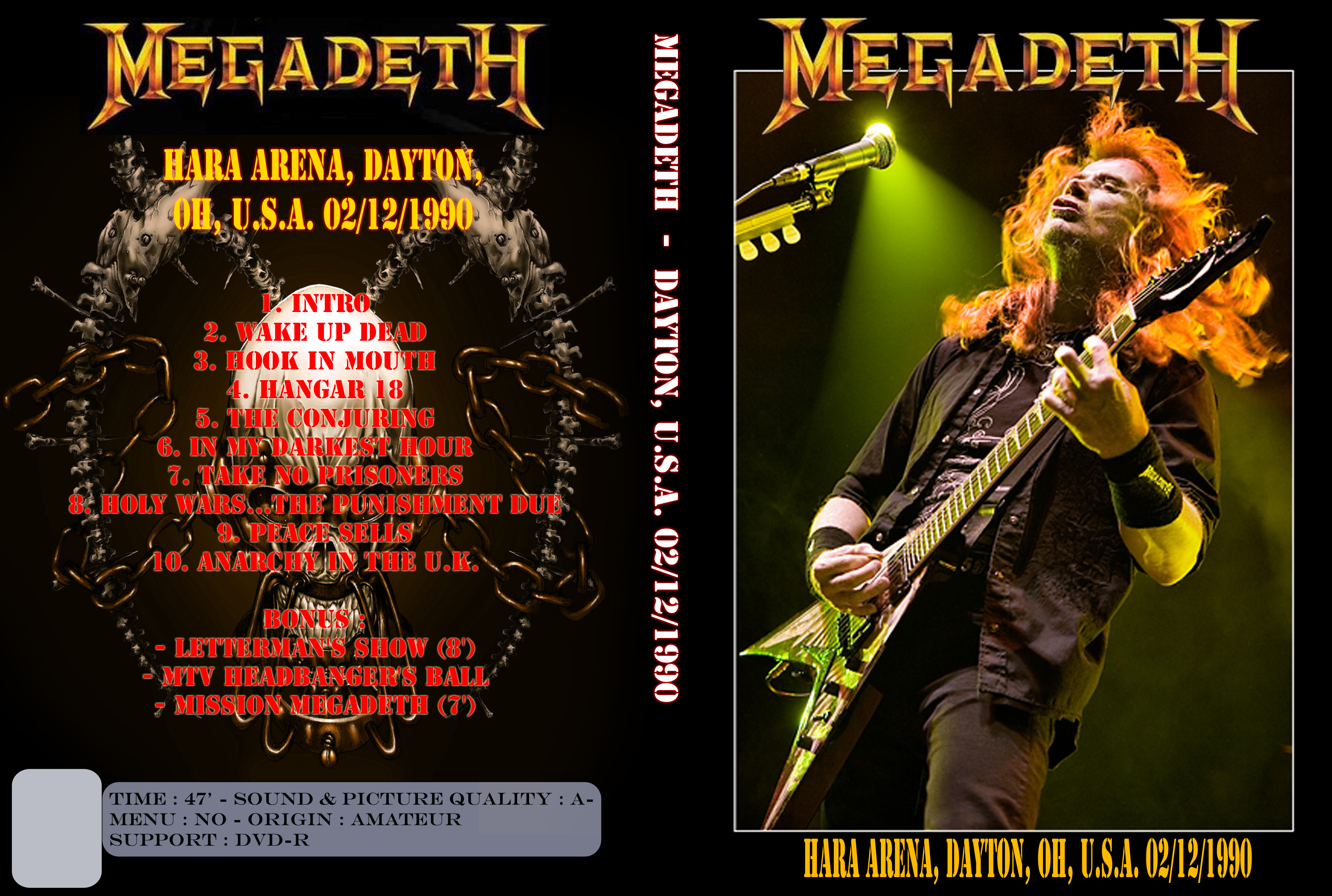 1. Intro 2. Wake Up Dead 3. Hook in Mouth 4. Hangar 18 5. The Conjuring 6. In My Darkest Hour 7. Take No Prisoners 8. Holy Wars ... The Punishment Due 9. Peace Sells 10. Anarchy In the U.K.