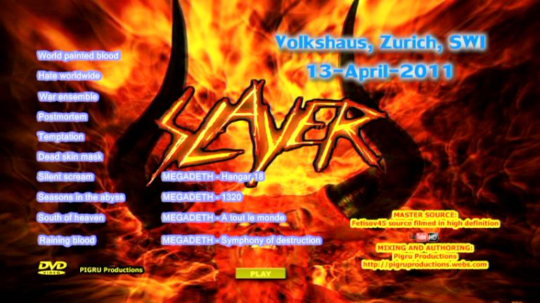 1. World Painted Blood 2. Hate Worldwide 3. War Ensemble 4. Postmortem 5. Temptation 6. Dead Skin Mask 7. Silent Scream 8. Seasons in the Abyss 9. South of Heaven 10. Raining Blood