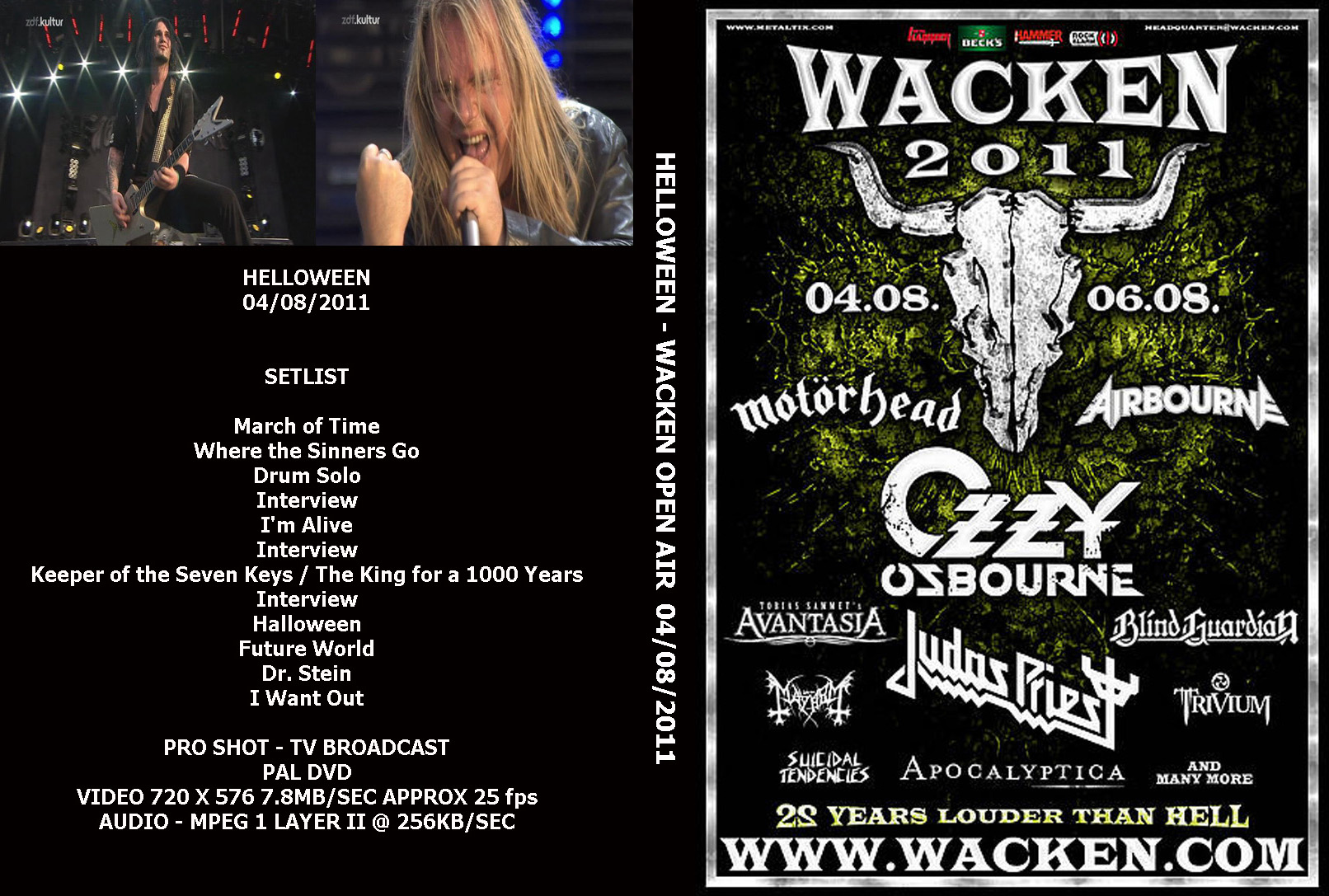 1. March of Time 2. Where the Sinners Go 3. Drum Solo 4. Interview 5. I'm Alive 6. Interview 7. Keeper of the Seven Keys / The King for a 1000 Years 8. Interview 9. Halloween 10. Future World 11. Dr. Stein 12. I Want Out