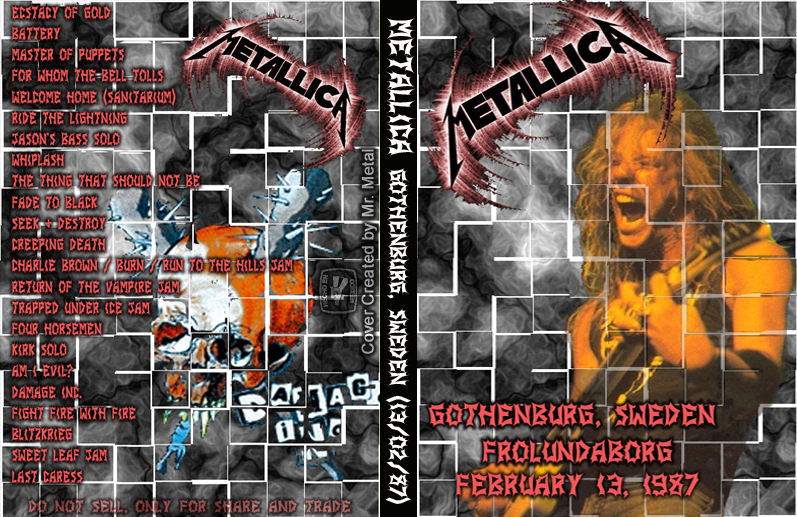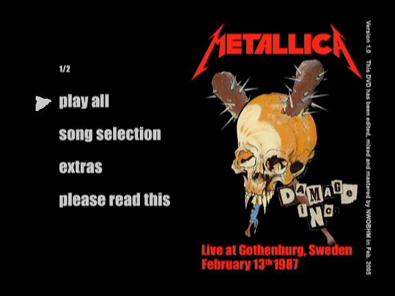1. The Ecstasy of Gold 2. Battery 3. Master of Puppets 4. For Whom the Bell Tolls 5. Welcome Home (Sanitarium) 6. Ride the Lightning 7. Jason's Bass Solo 8. Whiplash 9. The Thing That Should Not Be 10. Fade to Black