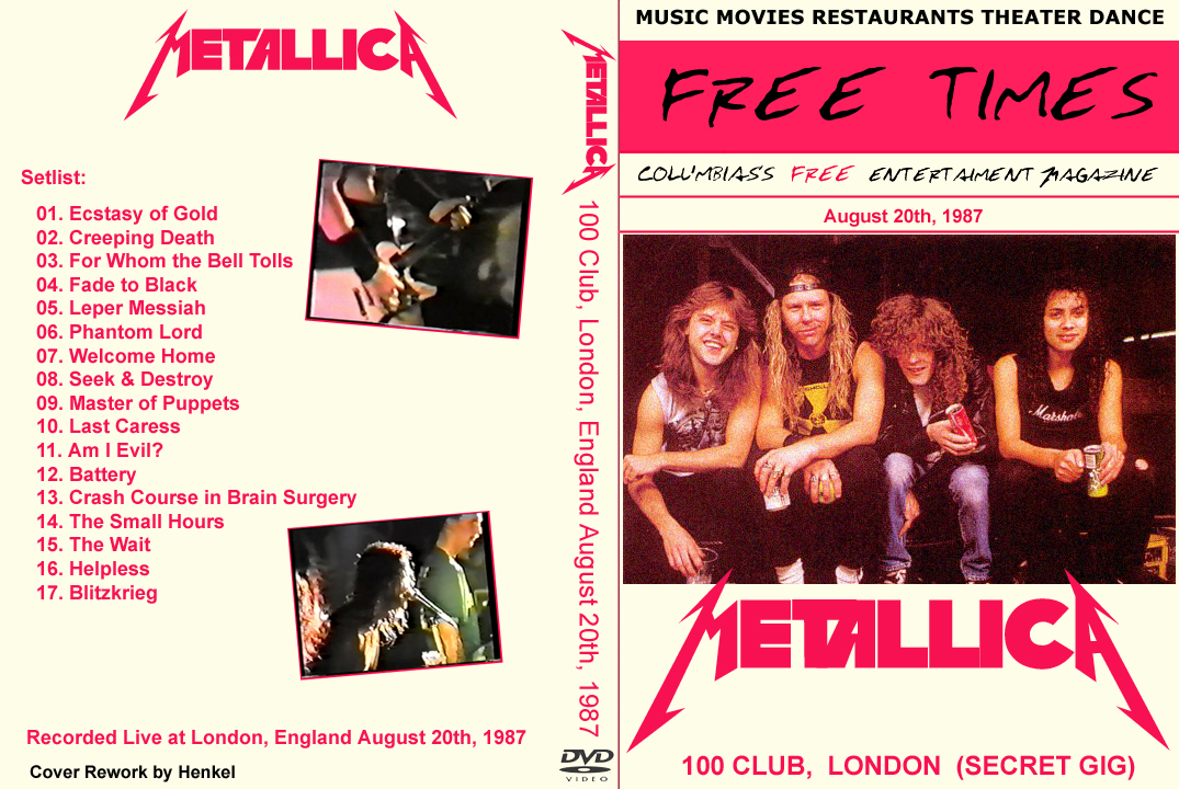 1. Ecstasy of Gold 2. Creeping Death 3. For Whom the Bell Tolls 4. Fade to Black 5. Leper Messiah 6. Phantom Lord 7. Welcome Home (Sanitarium) 8. Seek and Destroy 9. Master of Puppets 10. Last Caress 11. Am I Evil ? 12. Battery