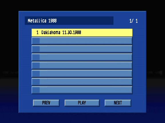1. The Ecstasy of Gold 2. Blackened 3. For Whom the Bell Tolls 4. Welcome Home (Sanitarium) 5. Leper Messiah 6. Harvester of Sorrow 7. Eye of the Beholder 8. Jason's Bass Solo 9. To Live Is to Die Jam 10. Master of Puppets 11. One 12. Seek and Destroy 13. ... And Justice for All 14. Creeping Death 15. Fade to Black 16. Kirk's Guitar Solo 17. Battery 18. Last Caress 19. Am I Evil ? (cut)