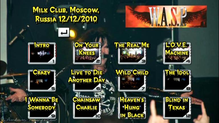 1. Intro 2. On Your Knees 3. The Real Me 4. L.O.V.E. Machine 5. Crazy 6. Live to Die Another Day 7. Wild Child 8. The Idol 9. I Wanna Be Somebody 10. Chainsaw Charlie (Murders in the New Morgue) 11. Heaven's Hung in Black 12. Blind in Texas