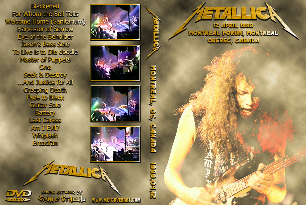 1. The Ecstasy of Gold 2. Blackened 3. For Whom the Bell Tolls 4. Welcome Home (Sanitarium) 5. Harvester of Sorrow 6. Eye of the Beholder 7. Bass Solo 8. To Live Is to Die Jam 9. Master of Puppets 10. One 11. Seek and Destroy 12. ... And Justice for All 13. Creeping Death 14. Fade to Black 15. Guitar Solo 16. Battery 17. Last Caress 18. Am I Evil ? 19. Whiplash 20. Breadfan