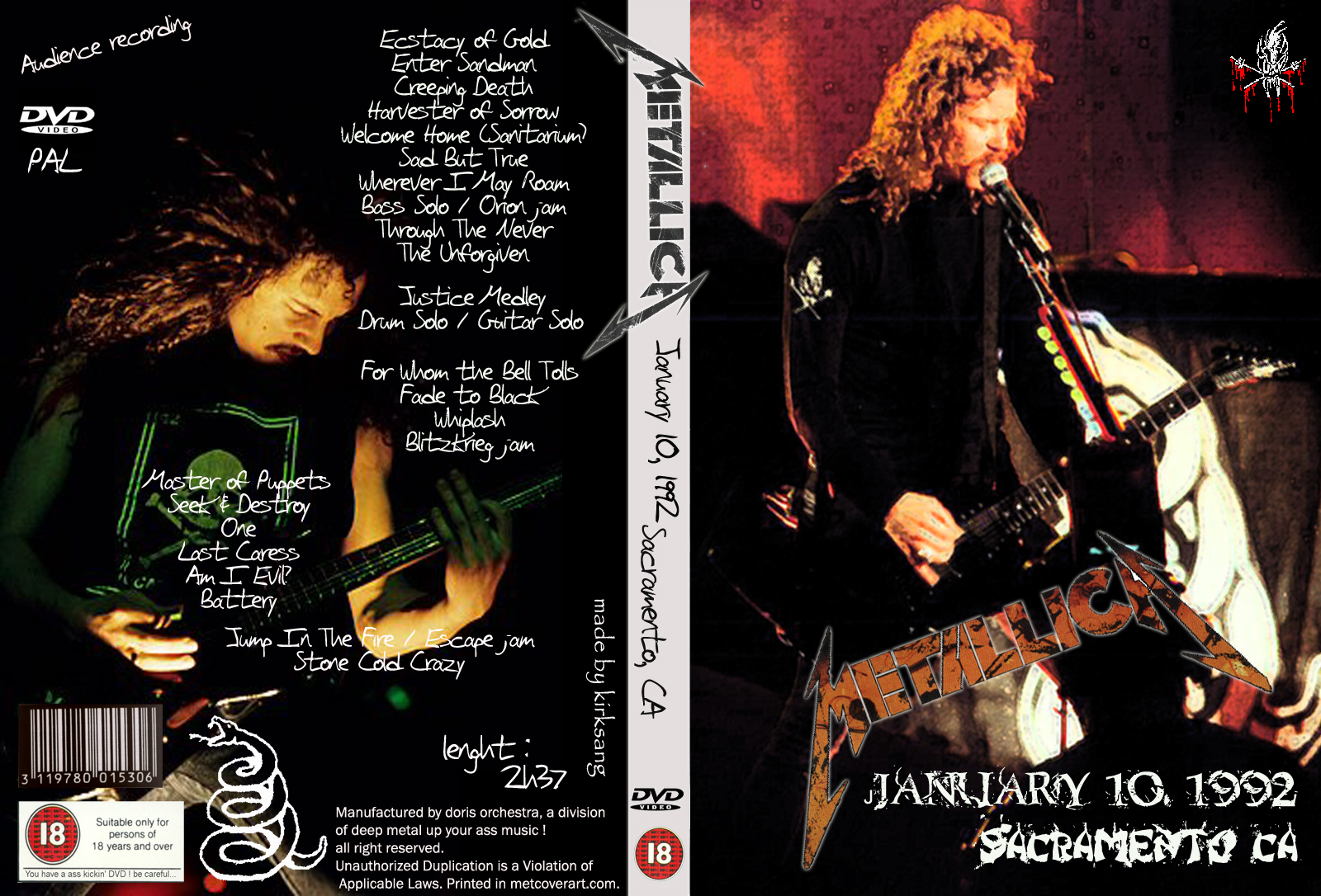1. Drum Solo / Guitar Solo pt.2 2. For Whom Bell Tolls 3. Fade to Black 4. Whiplash 5. Blitzkrieg Jam 6. Master of Puppets 7. Seek and Destroy 8. One 9. Last Caress 10. Am I Evil ? 11. Battery 12. Jump in the Fire / Escape Jam 13. Stone Cold Crazy