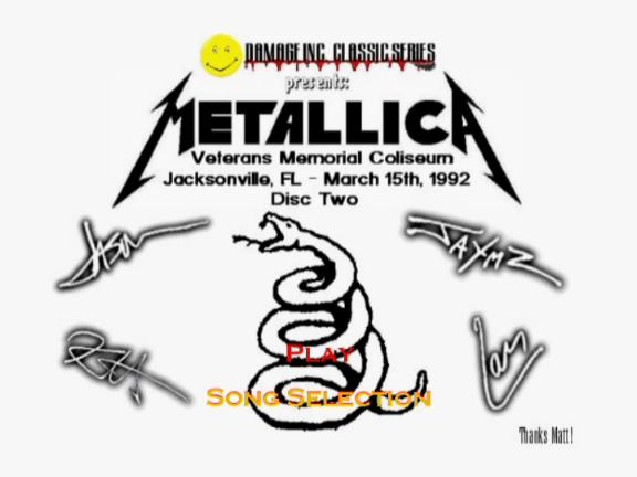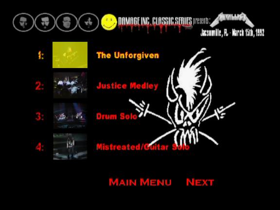 1. The Unforgiven 2. Justice Medley 3. Drum Solo 4. Mistreated Jam / Guitar Solo 5. Nothing Else Matters 6. For Whom the Bell Tolls 7. Fade to Black