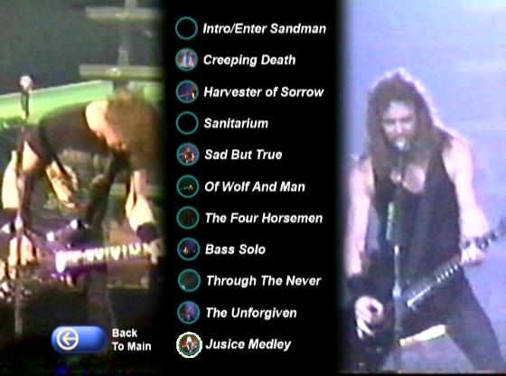 1. Intro 2. Enter Sandman 3. Creeping Death 4. Harvester of Sorrow 5. Welcome Home (Sanitarium) 6. Sad But True 7. Of Wolf and Mean 8. The Four Horsemen 9. Bass Solo 10. Through the Never 11. The Unforgiven 12. Justice Medley