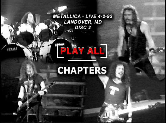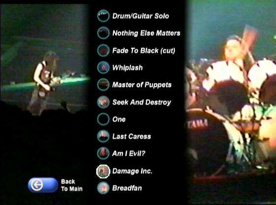 1. Drum / Guitar Solos 2. Nothing Else Matters 3. Fade to Black (cut) 4. Whiplash 5. Master of Puppets 6. Seek and Destroy 7. One 8. Last Caress 9. Am I Evil ? 10. Damage Inc. 11. Breadfan