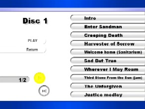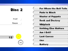 1. For Whom Bell Tolls 2. Fade to Black 3. Master of Puppets 4. Seek and Destroy 5. Whiplash 6. Nothing Else Matters 7. Am I Evil ? 8. Last Caress 9. One 10. Battery 11. Ride the Lightning / No Remorse Jam 12. Stone Cold Crazy