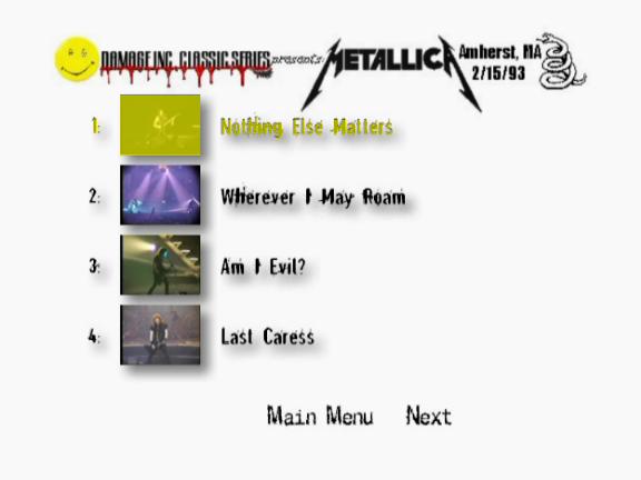 1. Nothing Else Matters 2. Wherever I May Roam 3. Am I Evil? 4. Last Caress 5. One 6. So What!? Jam 7. Battery