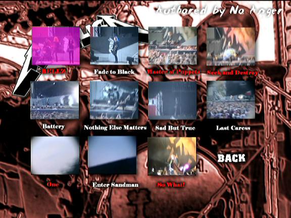 1. For Whom the Bell Tolls 2. Fade to Black 3. Master of Puppets 4. Seek and Destroy 5. Battery 6. Nothing Else Matters 7. Sad But True 8. Last Caress 9. One 10. Enter Sandman 11. So What