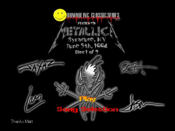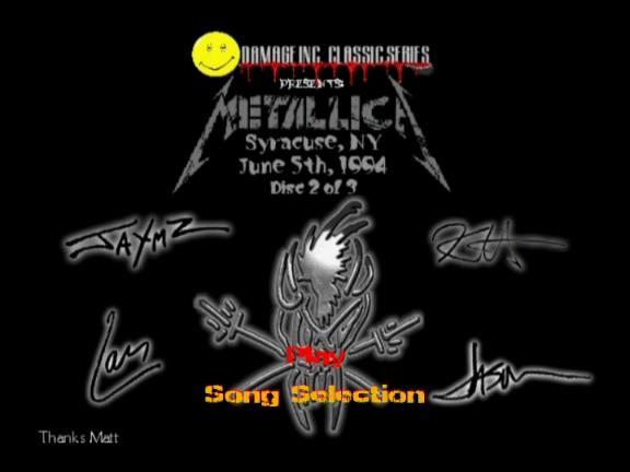 1. For Whom the Bell Tolls 2. Disposable Heroes 3. Seek and Destroy 4. Guitar Solo 5. Nothing Else Matters 6. Creeping Death 7. Fade to Black