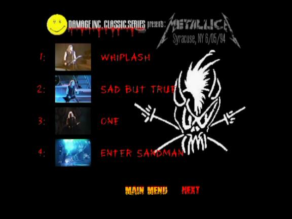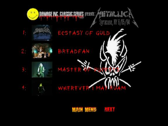 1. The Ecstasy of Gold 2. Breadfan 3. Master of Puppets 4. Wherever I May Roam 5. Harvester of Sorrow 6. Welcome Home (Sanitarium) 7. The God That Failed 8. Kill / Ride Medley