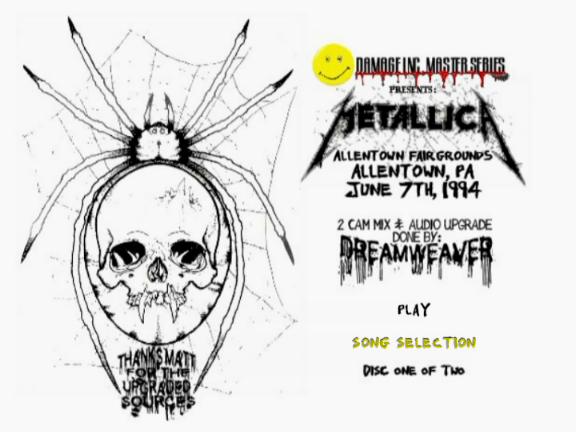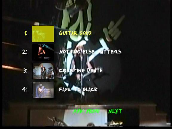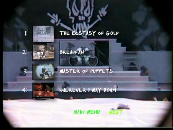 1. The Ecstasy of Gold 2. Breadfan 3. Master of Puppets 4. Wherever I May Roam 5. Harvester of Sorrow 6. Welcome Home (Sanitarium) 7. The God That Failed 8. Kill / Ride Medley 9. For Whom the Bell Tolls 10. Disposable Heroes 11. Seek & Destroy