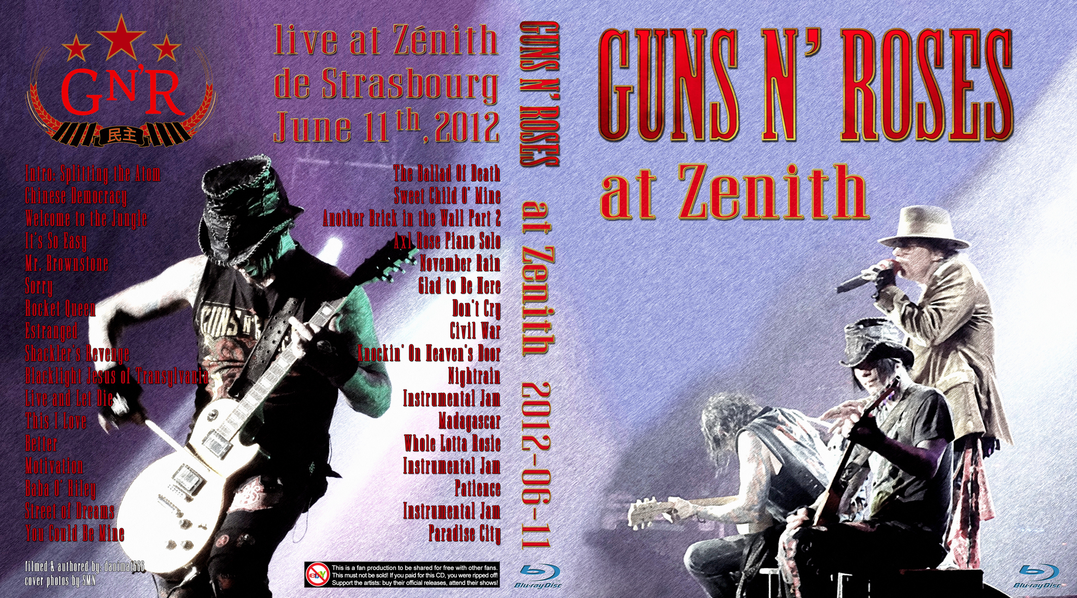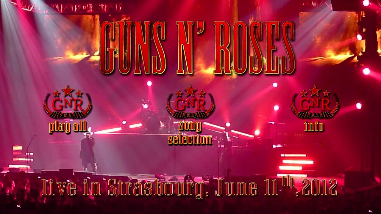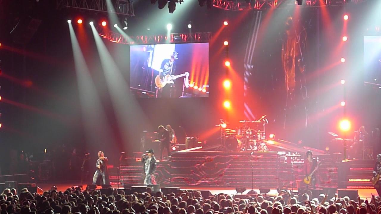 1. Splitting the Atom 2. Chinese Democracy 3. Welcome to the Jungle 4. It's So Easy 5. Mr. Brownstone 6. Sorry 7. Rocket Queen 8. Estranged 9. Shackler's Revenge 10. Richard Fortus Guitar Solo (Blacklight Jesus of Transylvania) 11. Live and Let Die (Paul McCartney & Wings cover) 12. This I Love 13. Better 14. Motivation (Tommy Stinson song) (Tommy Stinson on lead vocals, with band introductions) 15. Dizzy Reed Piano Solo (Baba O' Riley) 16. Street of Dreams 17. You Could Be Mine 18. DJ Ashba Guitar Solo (The Ballad of Death) 19. Sweet Child O' Mine 20. Another Brick in the Wall Part 2 (Pink Floyd cover) (with Axl on piano) 21. Axl Rose Piano Solo (Goodbye Yellow Brick Road/Someone Saved My Life Tonight) 22. November Rain 23. Glad to Be Here (Bumblefoot cover) (Bumblefoot on lead vocals) 24. Don't Cry 25. Civil War 26. Knockin' on Heaven's Door (Bob Dylan cover) 27. Nightrain 28. Instrumental Jam 29. Madagascar 30. Whole Lotta Rosie (AC/DC cover) 31. Instrumental Jam 32. Patience 33. Instrumental Jam 34. Paradise City