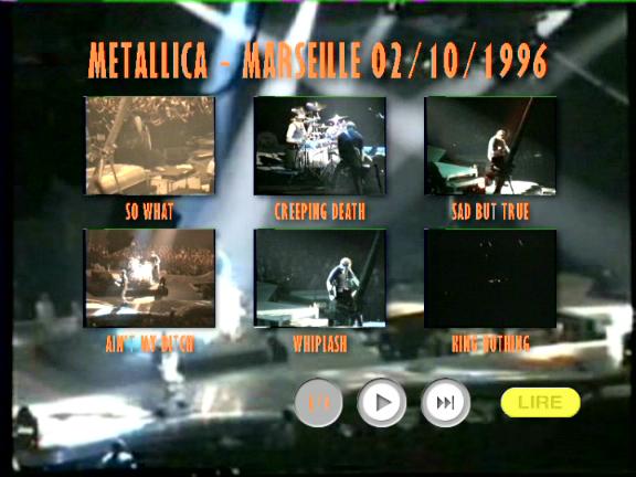 1. Ronnie Jam 2. So What! 3. Creeping Death 4. Sad but True 5. Ain't My Bitch 6. Whiplash 7. King Nothing 8. One 9. Devil's Dance 10. Bass Guitar Jam 11. Nothing Else Matters 12. Until it Sleeps 13. For Whom the Bell Tolls 14. Wherever I May Roam 15. Fade to Black 16. Kill / Ride Medley 17. Carpe Diem Baby Jam 18. Last Caress 19. Master of Puppets 20. Enter Sandman 21. Breadfan 22. Motorbreath