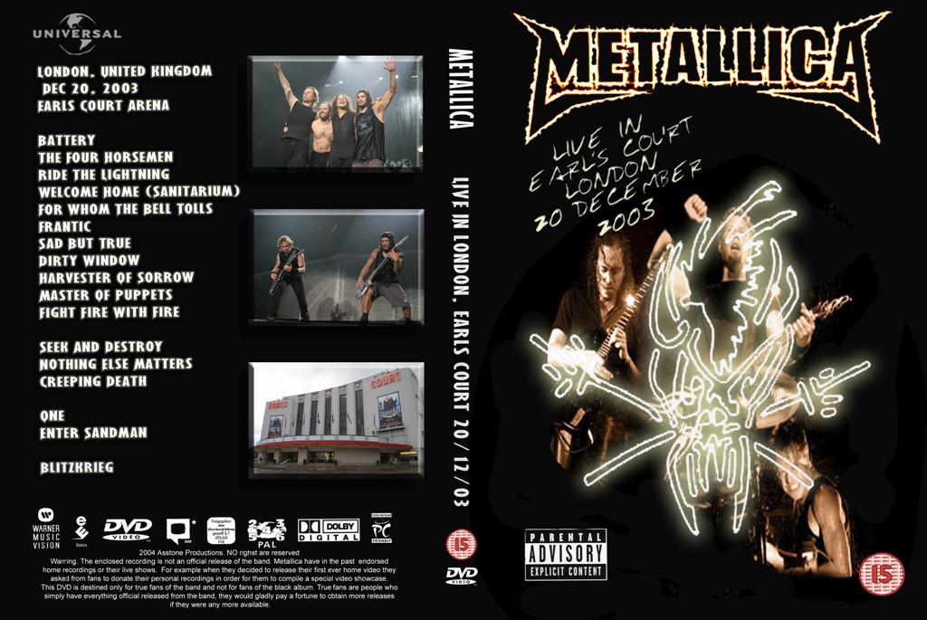 1. Ecstasy of Gold 2. Battery 3. Four Horsemen 4. Ride the Lightning 5. Welcome Home (Sanitarium) 6. For Whom the Bell Tolls 7. Frantic 8. Sad but True 9. Dirty Window 10. Harvester of Sorrow 11. Master of Puppets 12. Fight Fire with Fire 13. Seek and Destroy 14. Nothing Else Matters 15. Creeping Death 16. One 17. Enter Sandman 18. Blitzkrieg 19. Motorbreath
