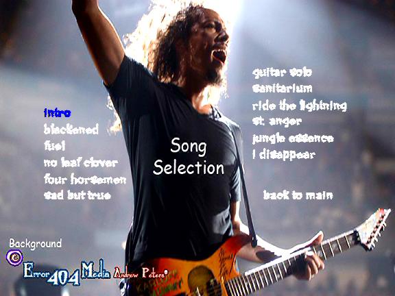 1. Intro 2. Blackened 3. Fuel 4. No Leaf Clover 5. The Four Horsemen 6. Sad But True 7. Guitar Solo 8. Welcome Home (Sanitarium) 9. Ride the Lightning 10. St. Anger 11. Jungle Essence 12. I Disappear