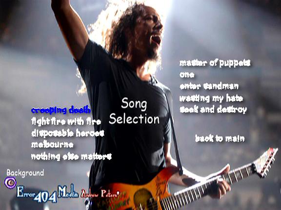 1. Creeping Death 2. Fight Fire With Fire 3. Disposable Heroes 4. Melbourne 5. Nothing Else Matters 6. Master of Puppets 7. One 8. Enter Sandman 9. Wasting My Hate 10. Seek and Destroy