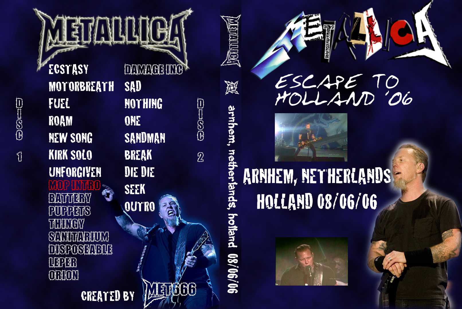 1. Ecstasy of Gold 2. Motorbreath 3. Fuel 4. Wherever I May Roam 5. New Song 6. Kirk Solo 7. The Unforgiven 8. Battery 9. Master Of Puppets 10. The Thing That Should Not Be 11. Welcome Home (Sanitarium) 12. Disposable Heroes 13. Leper Messiah 14. Orion