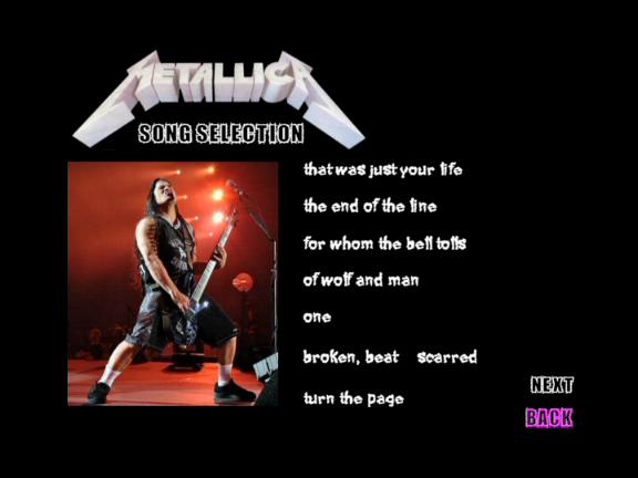 1. That Was Just Your Life 2. The End of the Line 3. For Whom the Bell tolls 4. Of Wolf and Man 5. One 6. Broken, Beat & Scarred 7. Turn the Page 8. All Nightmare Long 9. The Day That Never Comes 10. Master of Puppets 11. Nothing Else Matters 12. Enter Sandman