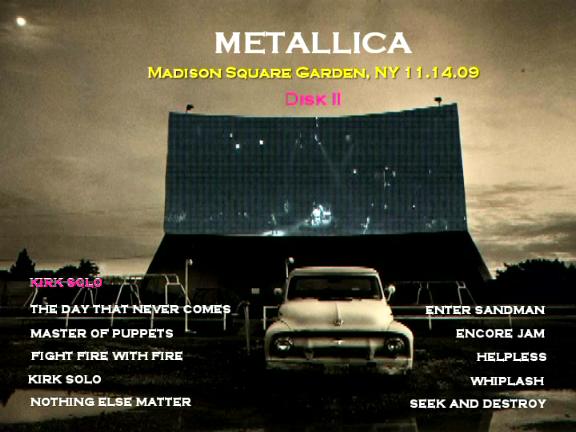 1. Kirk Solo 2. The Day That Never Comes 3. Master of Puppets 4. Fight Fire With Fire 5. Kirk Solo 6. Nothing Else Matters 7. Enter Sandman 8. Encore Jam 9. Helpless 10. Whiplash 11. Seek and Destroy