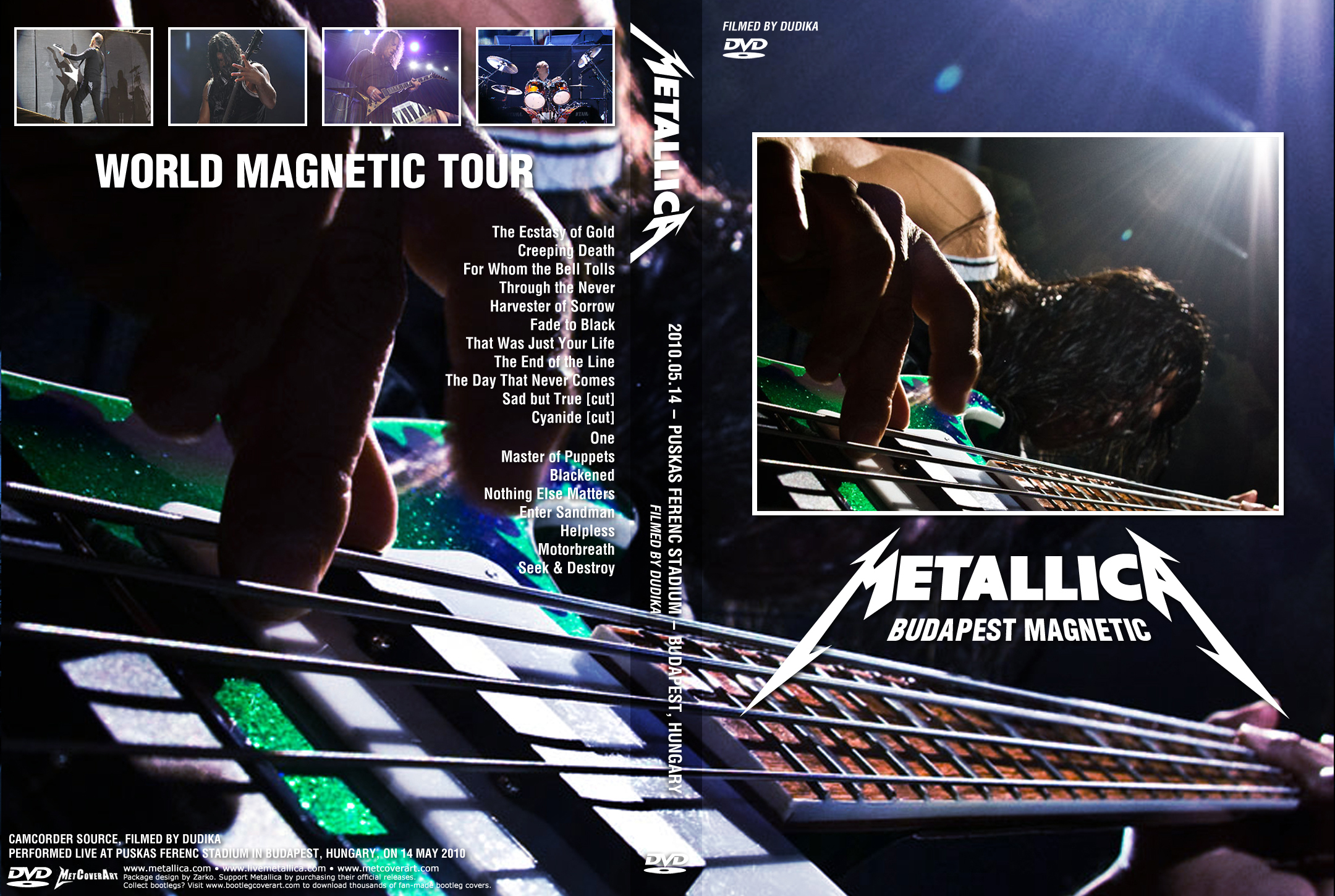 1. Ecstasy of Gold 2. Creeping Death 3. For Whom the Bell Tolls 4. Through the Never 5. Harvester of Sorrow 6. Fade to Black 7. That Was Just Your Life 8. The End of the Line 9. The Day That Never Comes 10. Sad But True (small cut at the end) 11. Cyanide (cut) 12. One 13. Master of Puppets 14. Blackened 15. Nothing Else Matters 16. Enter Sandman 17. Helpless 18. Motorbreath 19. Seek and Destroy