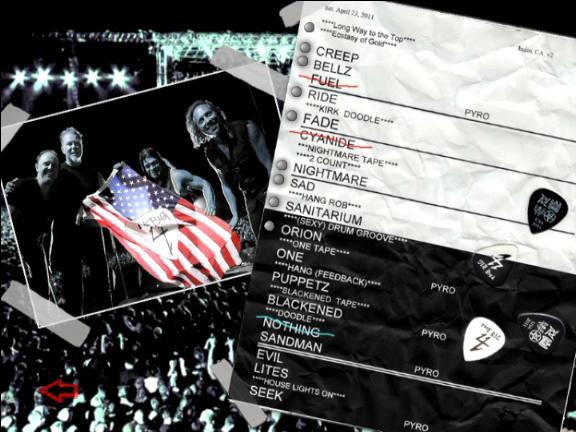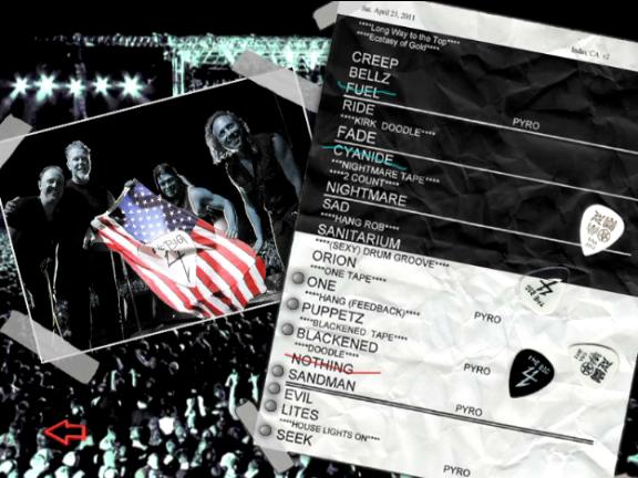 1. One 2. Masters of Puppets 3. Blackened 4. Enter Sandman 5. Am I Evil ? (with Megadeth, Anthrax & Slayer) 6. Hit the Lights 7. Seek and Destroy
