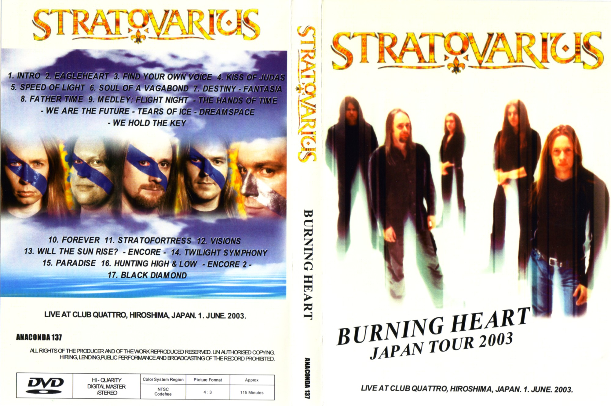 1. Intro 2. Eagleheart 3. Find Your Own Voice 4. The Kiss of Judas 5. Speed of Light 6. Soul of a Vagabond 7. Destiny - Fantasia 8. Father Time 9. Medley : Fright Night / The Hands of Time / We Are the Future / Tears of Ice / Dreamspace / We Hold the Key 10. Forever 11. Stratofortress 12. Visions 13. Will the Sun Rise ? 14. Twilight Symphony 15. Paradise 16. Hunting High and Low 17. Black Diamond