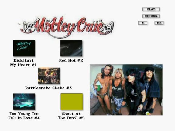 1. Kickstart My Heart 2. Red Hot 3. Rattlesnake Shake 4. Too Young to Fall in Love 5. Shout at the Devil 6. Live Wire 7. Same Ol' Situation 8. Slice of Your Pie 9. Looks That Kill 10. Smokin' in the Boys Room 11. Wild Side 12. Girls, Girls, Girls 13. Without You 14. Home Sweet Home 15. Dr. Feelgood