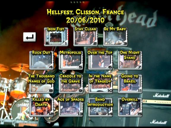 1. Iron Fist 2. Stay Clean 3. Be My Baby 4. Rock Out 5. Metropolis 6. Over the Top 7. One Night Stand 8. The Thousand Names of God 9. Craddle to the Grave 10. In the Name of Tragedy 11. Going to Brazil 12. Killed by Death 13. Ace Of Spades 14. Band Introduction 15. Overkill