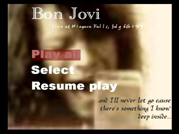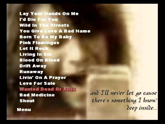 1. Lay Your Hands on Me 2. I'd Die for You 3. Wild in the Streets 4. You Give Love a Bad Name 5. Born to Be My Baby 6. Let It Rock 7. Living in Sin 8. Blood on Blood 9. Drift Away 10. Runaway 11. Livin on a Prayer 12. Love for Sale 13. Wanted Dead or Alive 14. Bad Medicine / Shout
