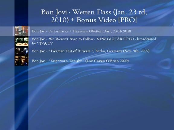 - We Weren't Born to Follow (New Guitar Solo - broadcasted by Viva TV) (4')- German Fest of 20 Years (Berlin, Germany 09/11/2009) (6')- Superman Tonight (Live Conan O' Brien 2009) (5')