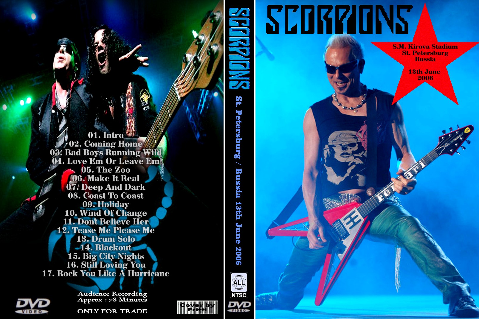 1. Intro 2. Coming Home 3. Bad Boys Running Wild 4. Love 'Em or Leave 'Em 5. The Zoo 6. Make It Real 7. Deep and Dark 8. Coast to Coast 9. Holiday 10. Wind of Change 11. Don't Believe Her 12. Tease Me Please Me 13. Drum Solo 14. Blackout 15. Big City Nights 16. Still Loving You 17. Rock You Like a Hurricane