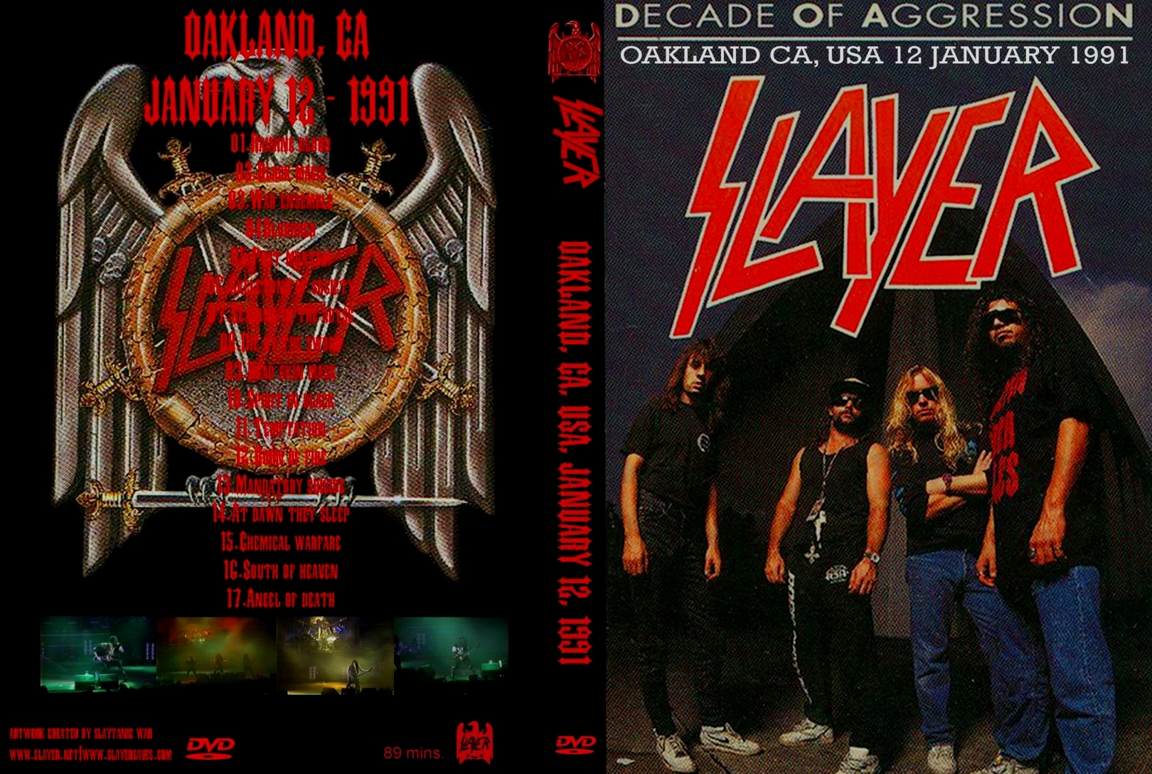 1. Raining Blood 2. Black Magic 3. War Ensemble 4. Blood Red 5. Postmortem 6. Skeletons of Society 7. Seasons in the Abyss 8. Die by the Sword 9. Dead Skin Mask 10. Spirit in Black 11. Expendable Youth 12. Born of Fire 13. Mandatory Suicide 14. Captor of Sin 15. Chemical Warfare 16. South of Heaven 17. Angel of Death