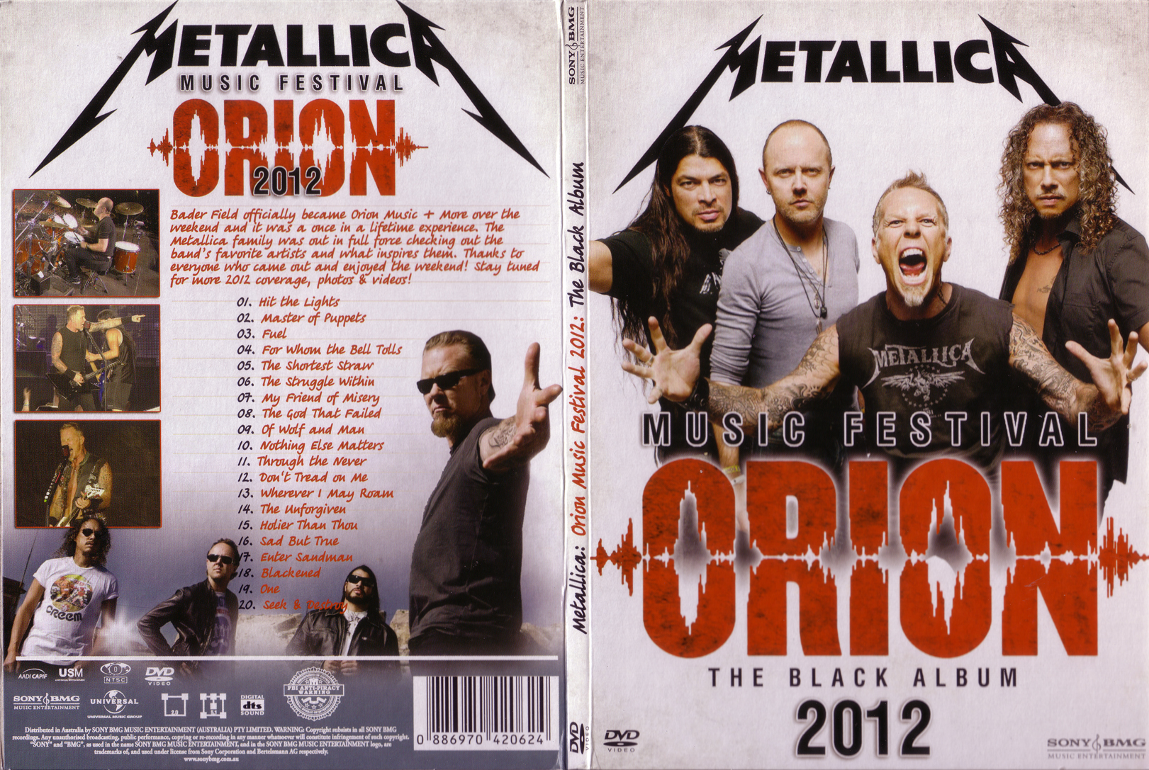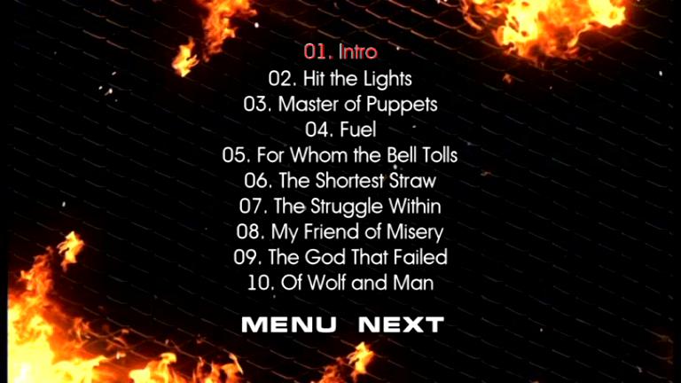 1. The Ecstasy of Gold / Hit the Lights 2. Master of Puppets 3. Fuel 4. For Whom the Bell Tolls 5. The Shortest Straw 6. The Struggle Within 7. My Friend of Misery 8. The God That Failed 9. Of Wolf and Man 10. Nothing Else Matters 11. Through the Never 12. Don't Tread on Me 13. Wherever I May Roam 14. The Unforgiven 15. Holier Than Thou 16. Sad but True 17. Enter Sandman 18. Blackened 19. One 20. Seek and Destroy