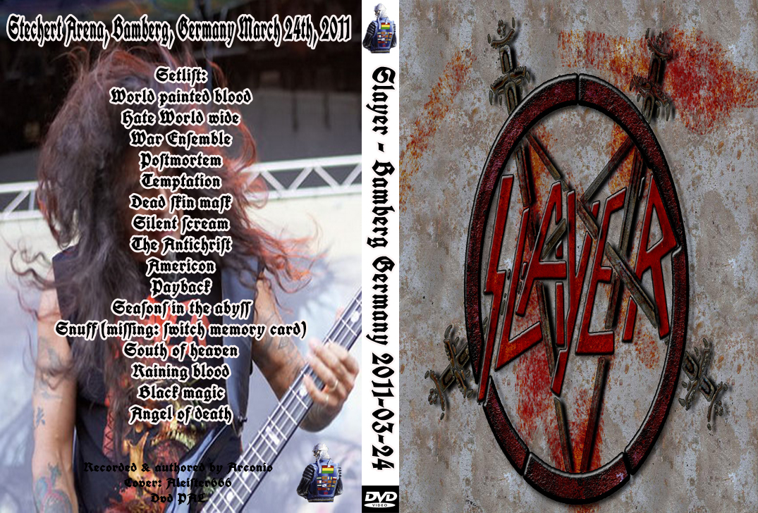 1. World Painted Blood 2. Hate Worldwide 3. War Ensemble 4. Postmortem 5. Temptation 6. Dead Skin Mask 7. Silent Scream 8. The Antichrist 9. Americon 10. Payback 11. Seasons in the Abyss 12. South of Heaven 13. Raining Blood 14. Black Magic 15. Angel of Death