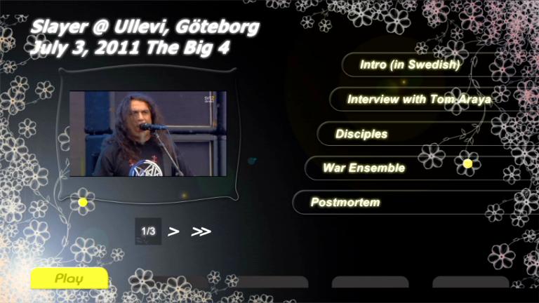 1. World Painted Blood 2. Hate Worldwide 3. War Ensemble 4. Postmortem 5. Dittohead 6. Dead Skin Mask 7. Spirit in Black 8. Mandatory Suicide 9. Chemical Warfare 10. Silent Scream 11. Seasons in the Abyss 12. Snuff 13. South of Heaven 14. Raining Blood 15. Black Magic 16. Angel of Death