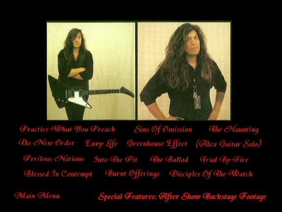 1. Practice What You Preach 2. Sins of Omission 3. The Haunting 4. The New Order 5. Envy Life 6. The Greenhouse Effect 7. Alex Guitar Solo 8. Perilous Nations 9. Into the Pit 10. The Ballad 11. Trial by Fire 12. Blessed in Contempt 13. Burnt Offerings 14. Drum Footage 15. Disciples of the Watch