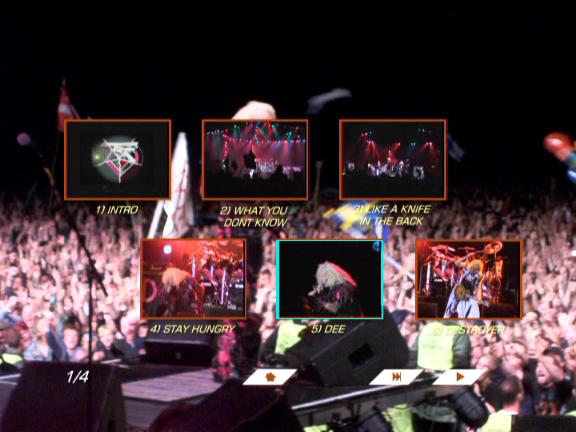 1. Intro 2. What You Don't Know 3. Like a Knife in the Back 4. Stay Hungry 5. Dee Speaks 6. Destroyer 7. To Chrool to Your Scuel 8. Under the Blade 9. Jay Jay Speaks 10. You Can't Stop Rock'n'Roll 11. I Am, I'm Me 12. The Fire Still Burns 13. Ride to Live, Live to Ride 14. Shoot 'Em Down 15. We're Not Gonna Take It 16. The Price 17. I Believe in Rock'n'Roll 18. Burn in Hell (incl. Drum Solo) 19. I Wanna Rock 20. Come Out and Play 21. Band Introduction 22. S.M.F.