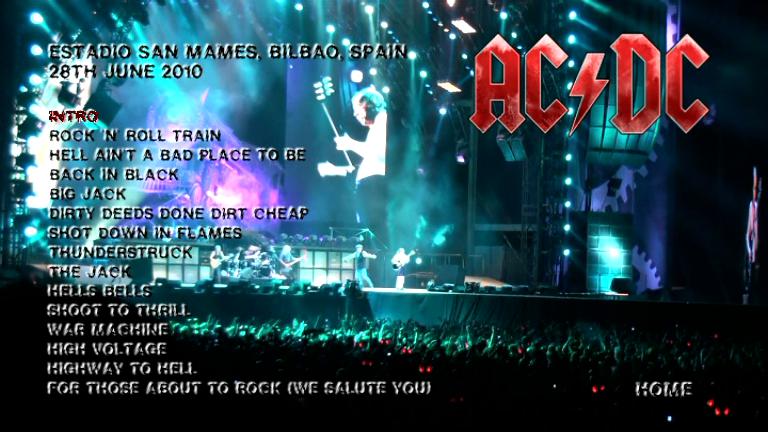 1. Intro 2. Rock'n'Roll Train 3. Hell Ain't a Bad Place to Be 4. Back in Black 5. Big Jack 6. Dirty Deeds Done Dirt Cheap 7. Shot Down in Flames 8. Thunderstruck 9. Black Ice 10. The Jack 11. Hells Bells 12. Shoot to Thrill 13. War Machine 14. High Voltage 15. Highway to Hell 16. For Those About to Rock