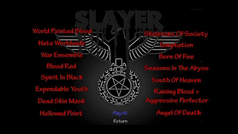 1. World Painted Blood 2. Hate Worldwide 3. War Ensemble 4. Blood Red 5. Spirit in Black 6. Expendable Youth 7. Dead Skin Mask 8. Hallowed Point 9. Skeletons of Society 10. Temptation 11. Born of Fire 12. Seasons in the Abyss 13. South of Heaven 14. Raining Blood 15. Angel of Death