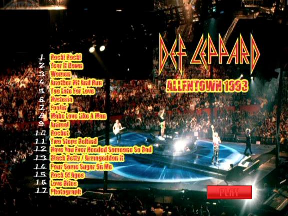 1. Rock! Rock! (Till You Drop) 2. Tear It Down 3. Women 4. Another Hit and Run 5. Too Late for Love 6. Hysteria 7. Foolin' 8. Make Love Like a Man 9. Animal 10. Rocket (Extended) 11. Two Steps Behind (Acoustic) 12. Have You Ever Needed Someone So Bad 13. Armageddon It 14. Pour Some Sugar on Me 15. Rock of Ages 16. Love Bites 17. Photograph