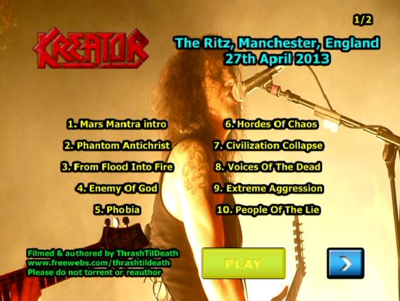1. Mars Mantra 2. Phantom Antichrist 3. From Flood into Fire 4. Enemy of God 5. Phobia 6. Hordes of Chaos (A Necrologue for the Elite) 7. Civilization Collapse 8. Voices of the Dead 9. Extreme Aggression 10. People of the Lie 11. Death to the World 12. Coma of Souls Intro 13. Endless Pain 14. Pleasure to Kill 15. The Patriarch 16. Violent Revolution 17. United in Hate 18. Betrayer 19. Flag of Hate 20. Tormentor