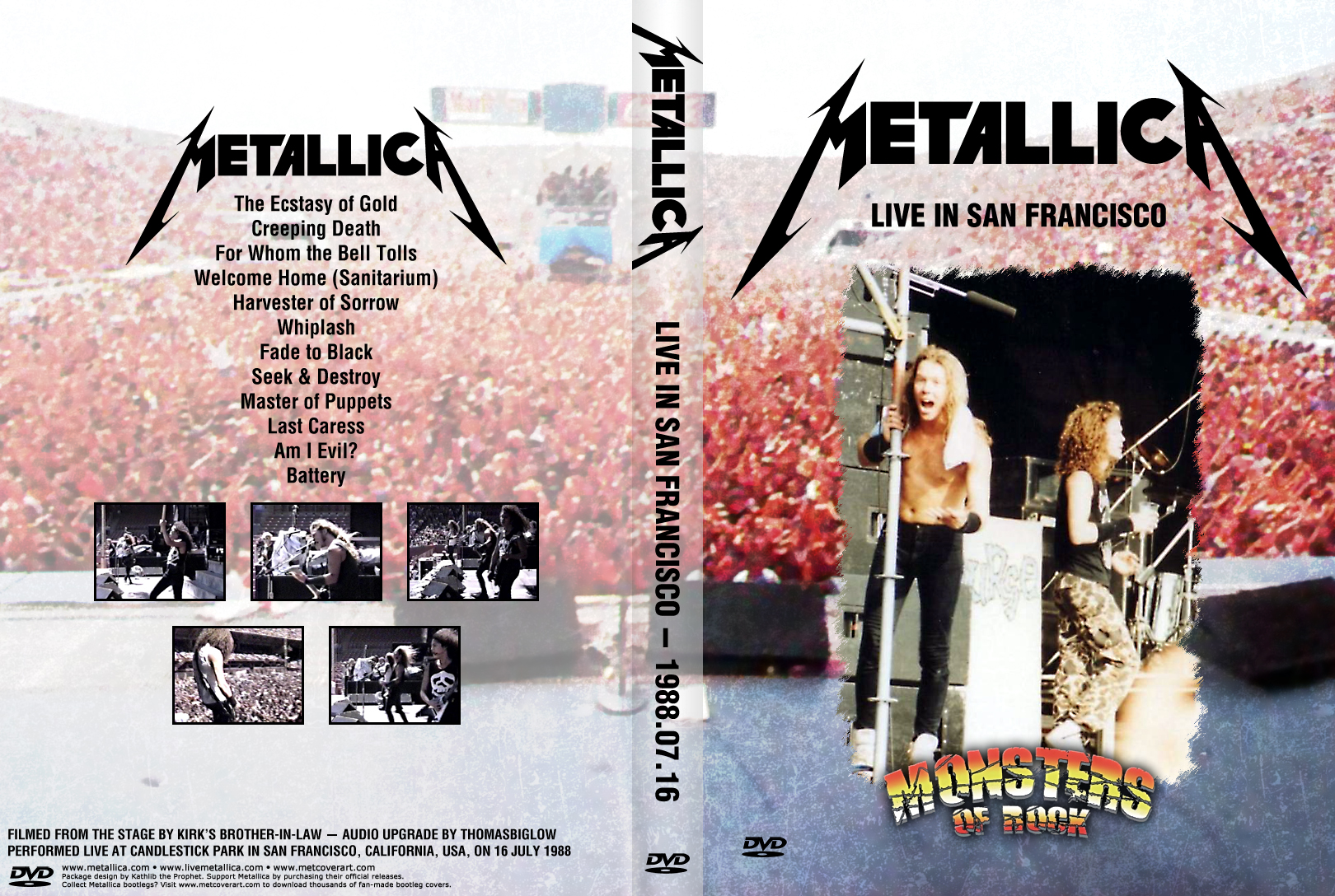 1. Ecstasy of Gold 2. Creeping Death 3. For Whom the Bell Tolls 4. Welcome Home (Sanitarium) 5. Harvester of Sorrow 6. Whiplash 7. Fade to Black 8. Seek & Destroy 9. Master of Puppets 10. Last Caress 11. Am I Evil? 12. Battery (Video stops, Audio goes on)