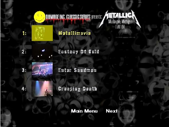 1. Metallimovie 2. The Ecstasy of Gold 3. Enter Sandman 4. Creeping Death 5. Harvester of Sorrow 6. Welcome Home (Sanitarium) 7. Sad but True 8. Bass Solo 9. Holier Than Thou