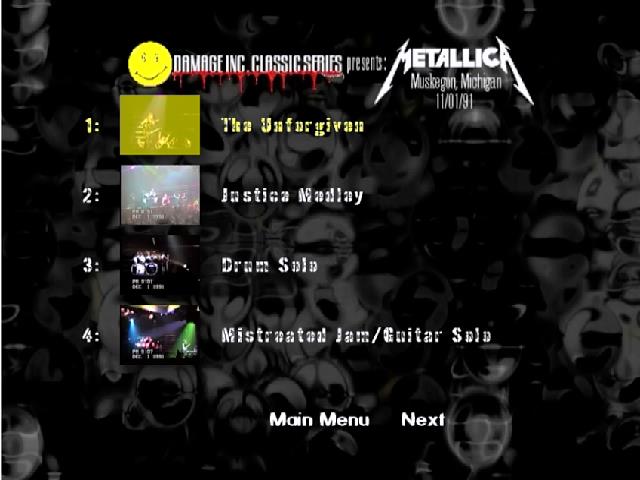 1. The Unforgiven 2. Justice Medley 3. Drum Solo 4. Mistreated Jam / Guitar Solo 5. The Four Horsemen 6. For Whom the Bell Tolls 7. Fade To Black 8. Whiplash